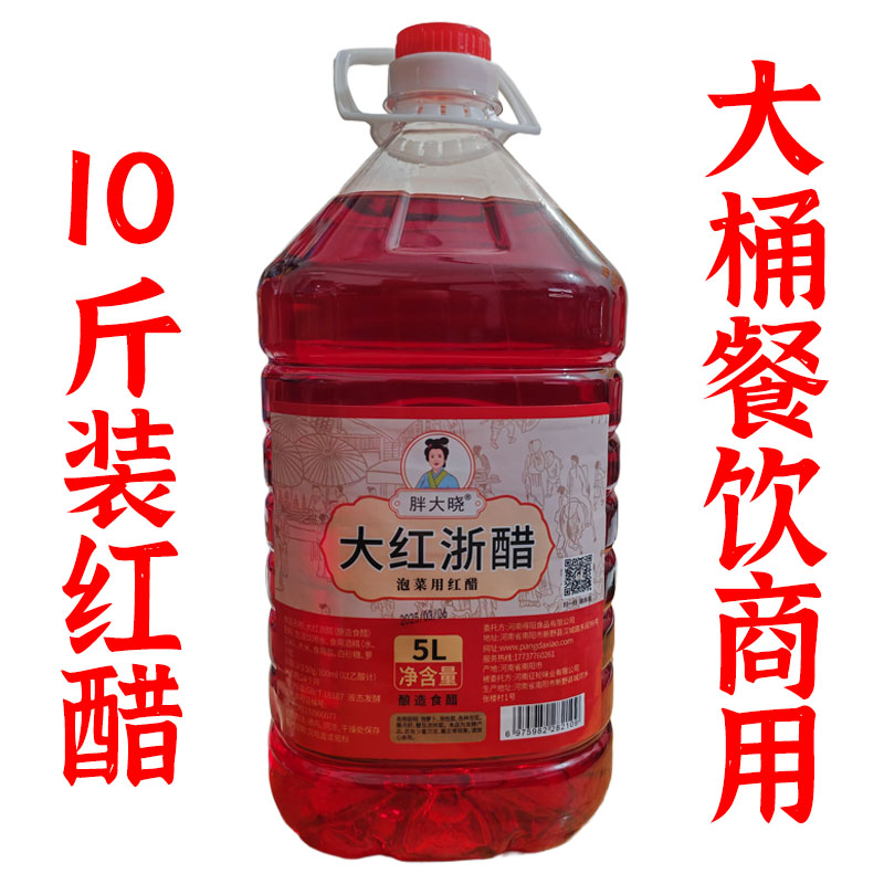 胖大晓大红浙醋餐饮商用大桶装10斤泡菜泡萝卜专用红醋酿造浙醋5L